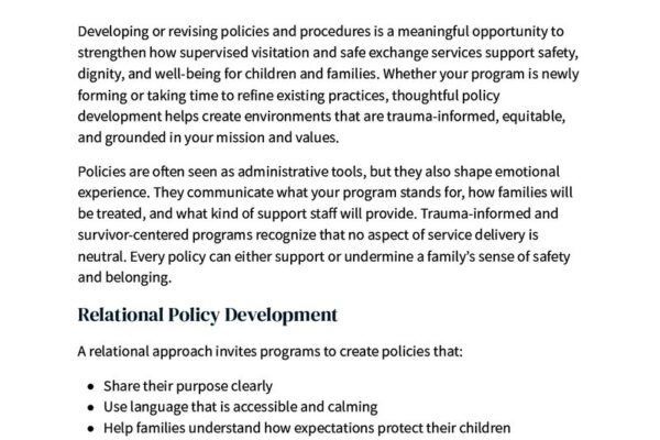Guide for Developing Internal and External Relational Policies & Procedures for Supervised Visitation & Safe Exchange Programs