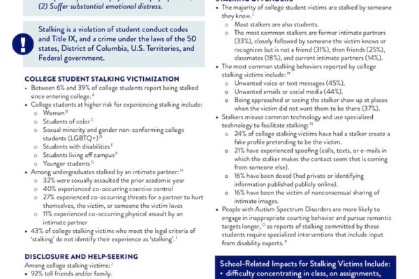 A fact sheet about the prevalence of stalking on college campuses and among college-age adults (ages 18 to 24).