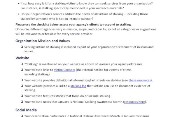 Addressing Stalking: A Checklist for Domestic and Sexual Violence Organizations
