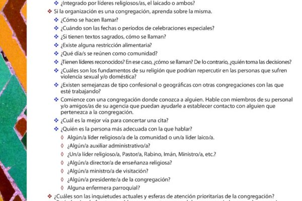 Spanish resource: Information for advocates and service providers who want to begin outreach to their area faith communities.