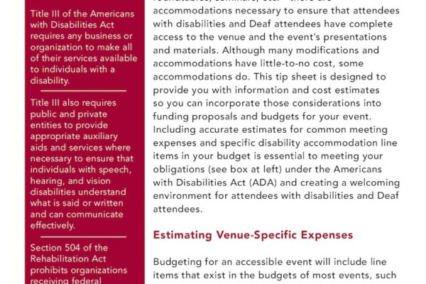 Designing Accessible Events for People with Disabilities and Deaf Individuals: Budgeting for Access Tip Sheet
