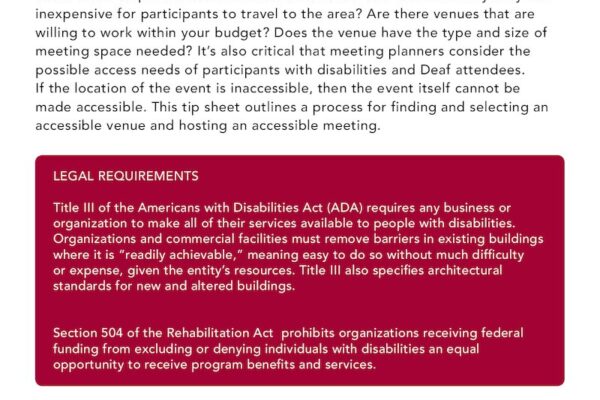 Designing Accessible Events for People with Disabilities and Deaf People: Selecting An Accessible Venue Tip Sheet