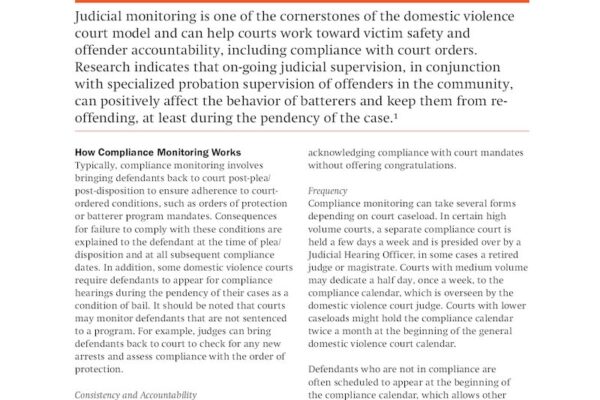 This fact sheet is meant to assist jurisdictions in planning effective compliance monitoring of domestic violence offenders.
