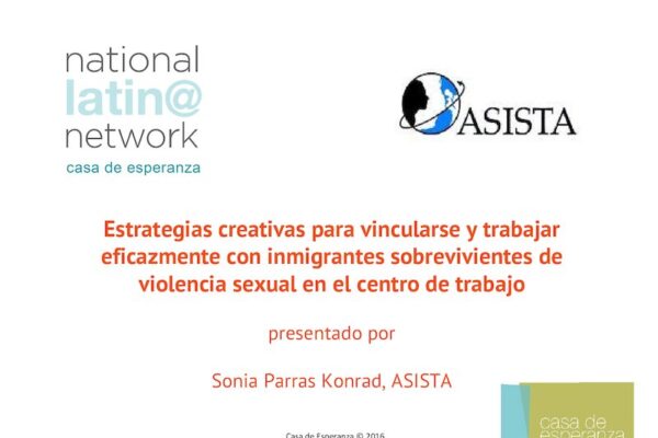 Webinar presented by ASISTA and Casa de Esperanza on Creative Strategies for Outreaching And Working Effectively with Immigrant Survivors of Sexual Violence in the Workplace.