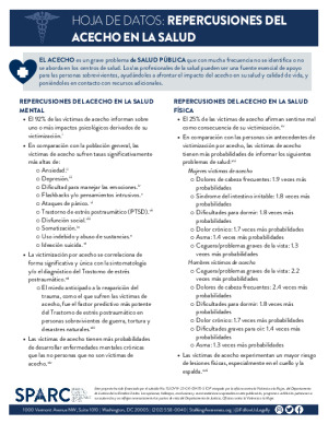A fact sheet (in Spanish) highlighting the physical and mental health impacts on stalking victims/survivors