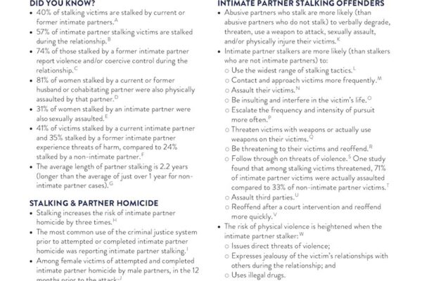 A fact sheet highlighting the intersection of stalking and intimate partner and/or domestic violence.