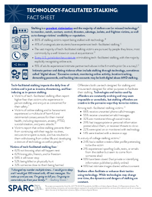 A fact sheet highlighting how technology can be used to facilitate a stalking course of conduct