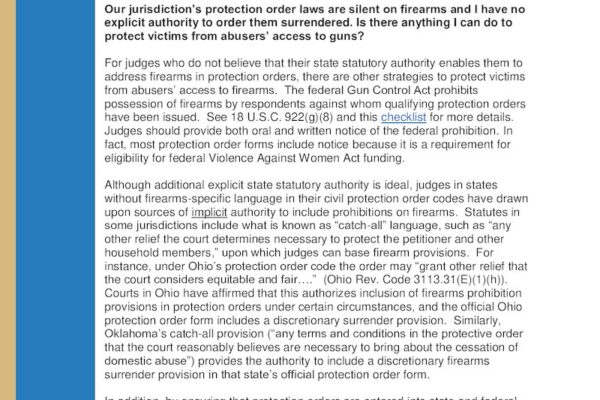 Firearms and Civil Protection Orders: Answers to Judges’ Frequently Asked Questions