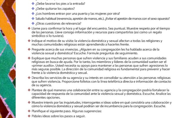 Resource in Spanish for advocates and service providers who are looking to reach out to their area faith communities.