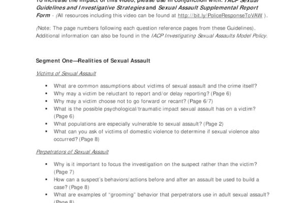 IACP’s sexual assault roll-call training video “Bringing Sexual Assault Offenders to Justice” was developed to expand our law enforcement educational efforts on the crime of sexual assault and accompany the IACP Sexual Assault Guidelines and Supplemental Report Form. The goal of this video is to help officers generate stronger cases by reframing sexual assault crimes, providing tools to conduct perpetrator focused investigations, and building an understanding of victim behavior. “Bringing Sexual Assault Offenders to Justice” will help officers identify victim trauma and provide information about victim behavior, such as delayed reporting, alcohol or substance abuse, and encounters that start out consensually, that can be used to support a sexual assault report. This video will also provide useful information detailing how perpetrators often have a history of unreported acts of sexual violence and may select victims with vulnerabilities to exploit. A strong sexual assault training program will result in offenders being held accountable, fewer cases being dismissed, and ultimately increase successful prosecution. Links to videos: https://www.youtube.com/watch?v=0bJDi5YTd1M&feature=youtu.be https://www.youtube.com/watch?v=ojYVshH87Ac&feature=youtu.be https://www.youtube.com/watch?v=4xv4bU734uQ&feature=youtu.be