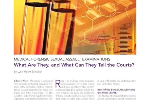 Published in the Summer 2015 volume of “The Judges’ Journal,” this article is a condensation of NJEP ‘s online curriculum, “Medical Forensic Sexual Assault Examinations: What Are They and What Can They Tell the Courts?” available free at https://www.legalmomentum.org/training-materials/medical-forensic-sexual-assault-examinations-what-are-they-and-what-can-they-tell.