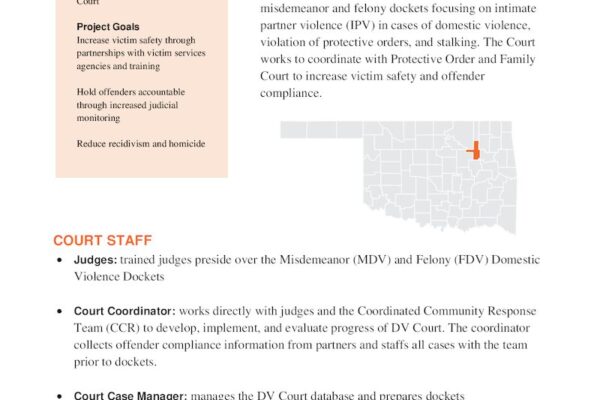 This is a fact sheet highlighting Tulsa County District Court, one of the FY 2020 OVW Mentor Courts.