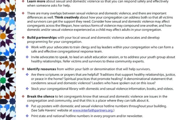 These quick tips can help faith communties take first steps towards supporting victims and survivors of sexual and domestic violence.