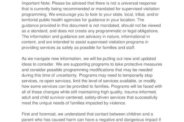 Resuming On-Site Supervised Visitation Services Safely for Families Experiencing Domestic Violence in a Time of a National Health Crisis