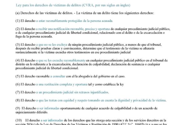 Select Victims Rights Handout-Crime Victims’ Rights Act (CVRA) (En Español)