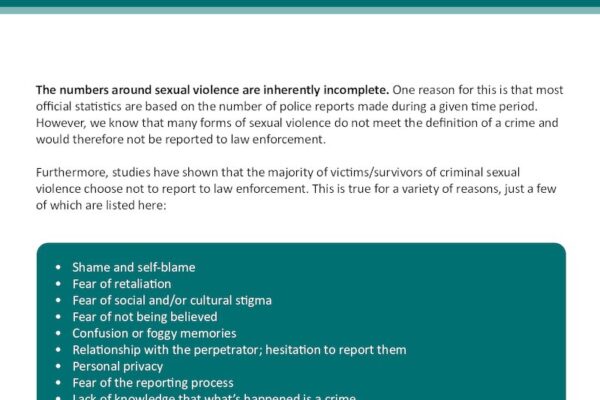 This resource reviews sexual violence reporting and why many victims/survivors chose to not report to law enforcement.