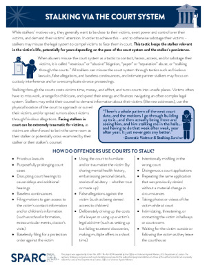 A resource outlining the myriad ways stalkers may misuse the legal system to continually victimize their victims and how prosecutors, victim advocates, and court personnel can help mitigate these harms before, during, and after court.