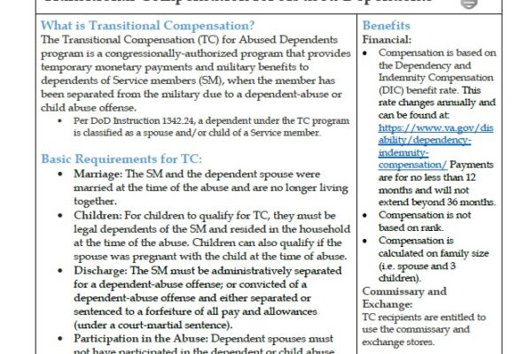 Transitional Compensation for Abused Dependents of Military-Connected Individuals Tip Sheet